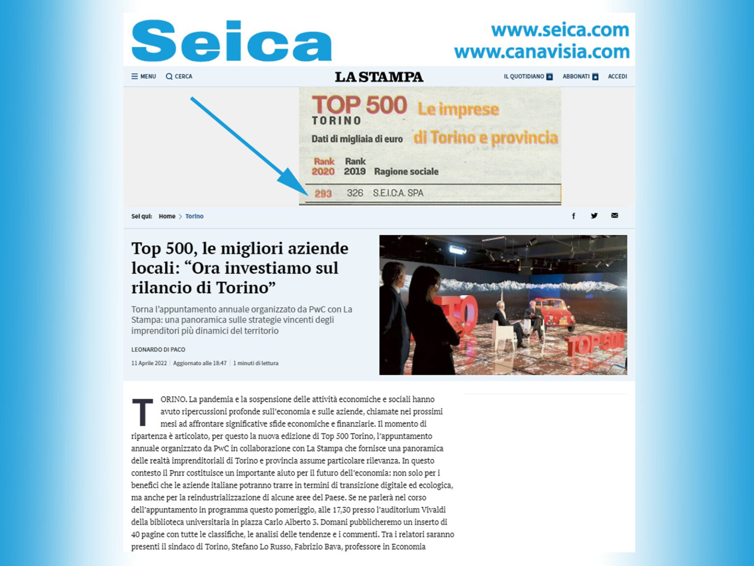 Seica è onorata di far parte anche quest’anno della Classifica “Top 500” , di essere tra le migliori 500 aziende di Torino e Provincia , sulla base di un incrocio di dati economici, di produttivi